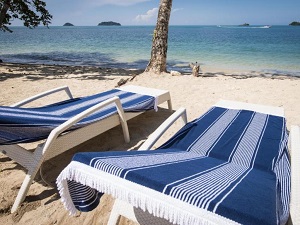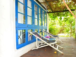 “บ้านสีขาว หลังคาฟ้า ริมทะเลเกาะช้าง”