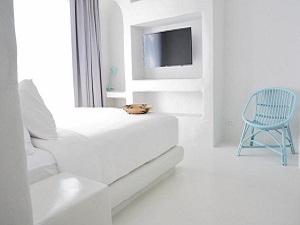 รีสอร์ทที่ได้ฟิลล์ซานโตรินี่ขนาดย่อม จำลองออกมาได้ไม่มีผิดเพี้ยน ภายในห้องพักเพียบพร้อมด้วยสิ่งอำนวยความสะดวก แถมยังติดกับสวนน้ำซาโตรินี่ วอเตอร์ แฟนตาซีและสวนสนุกซานโตรินี่ พาร์ค